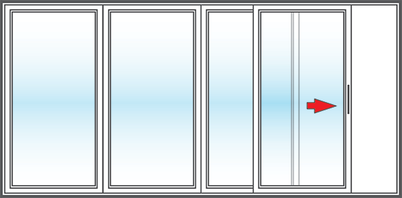 With four-panel sliding patio doors, one or two of the doors are mobile and simply slide horizontally over an adjacent stationary door. The operable panel can be the far right, far left or two center panels. In most cases, the panels will be of equal size, but we can create custom four-panel sliding patio doors for your specific home or business. Move your cursor over the illustration to see how sliding patio doors operate.