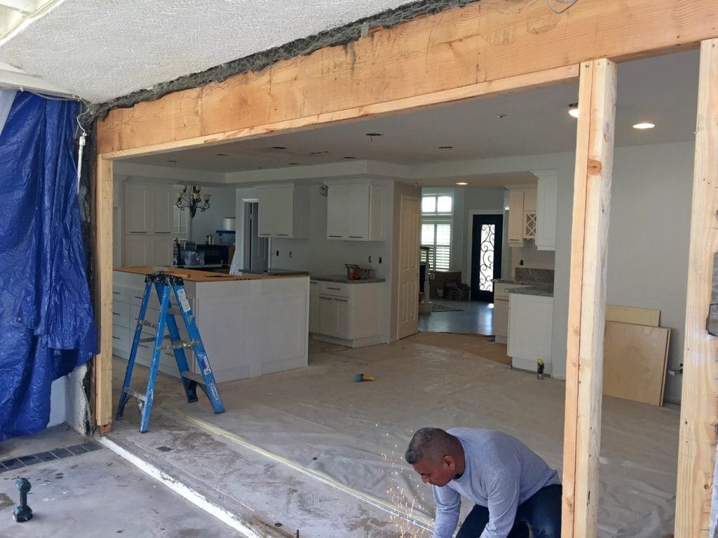 Medi S. in Etiwanda, CA wanted a large door instead of the existing small door going into the back yard. We opened the wall, performed the installation a 16” header, installed a 4 panel French rail slider door that opens from the center and finished the drywall and stucco. This was the last finishing touch to the ultimate party house.