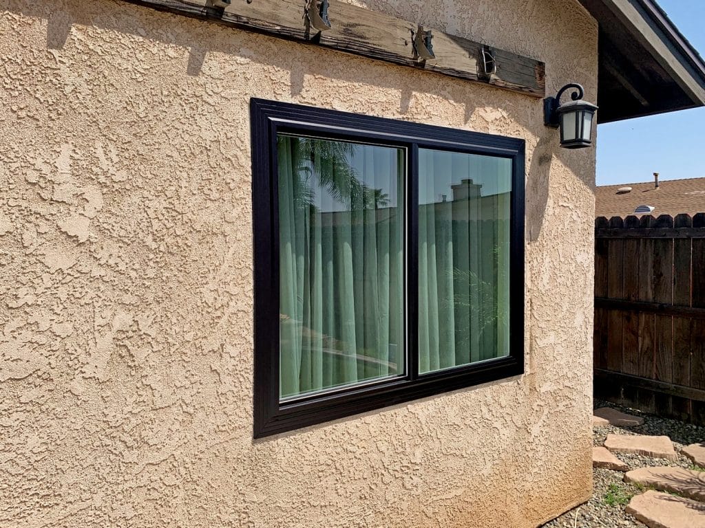 Take a look at this gorgeous black window and patio door installation project we worked on in Rancho Cucamonga, CA! If you want to give your home a bold style, black windows are for you! Black windows have a long history. Black windows have had a long history and have been used since the early 1900s! These window frames first gained popularity for use in factories and warehouses, but homeowners soon adopted the windows due to their stunning appearance. The classic look that black windows achieve gives a home a classic charm that can’t be matched by regular white windows! If you want to join the dark side with black windows, give us a call at (909) 969-8976 or click here for a FREE consultation.
