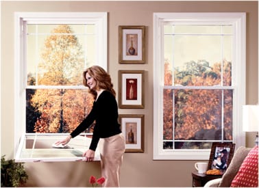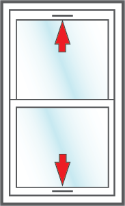 Double hung windows are somewhat common so many people already know how they operate. The window has two glass panels positioned vertically. Both the top and bottom sashes slide vertically past each other to open. This allows for the option of having one or both panels open. Move your cursor over the illustration to see how double hung windows operate.